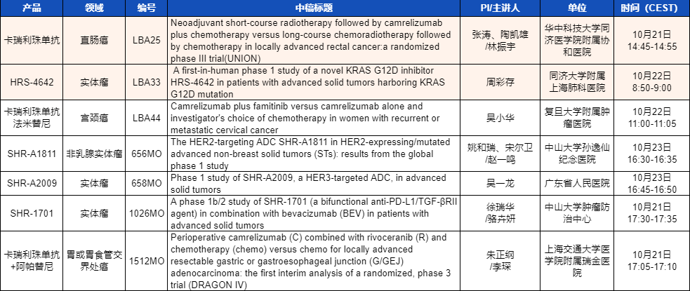 ESMO 2023 AG真人平台医药产品相关研究一览